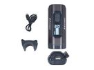 3 super svítivé LED diody, display zobrazující aktuální funkci světla a přibližný čas výdrže, 5 režimů svícení: základní (2 %-40h), nízké (15%-7h), střední (40%-2,5h), vysoké (65%-1,5h), Super (100 %-1h), 3 režimy blikání: denní světlo (45h), záblesk (50h), pulsní záblesk (30h), dlouhým stiskem zapnete nebo vypnete světlo, dobíjecí lithiová baterie 3,7V 3000mAH, včetně micro USB kabelu, ochrana proti přebití a vybití
